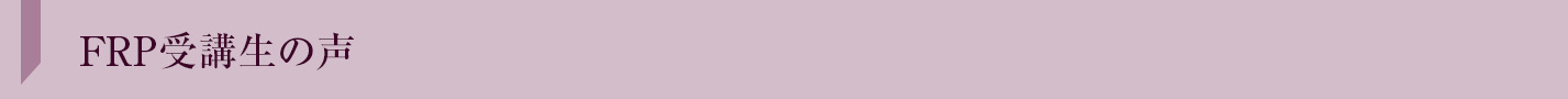 スポーツジムでピラティスやヨガのインストラクターをしている中で、自身の身体の弱いところを知りたい!解剖学などを勉強して自信をもって指導できるようになりたい!と思っているところFRPに出会いました。インストラクター仲間のなかにFRP卒業生がおり、仲間から養成コースを受講して良かったと聞き受講を決心しました。